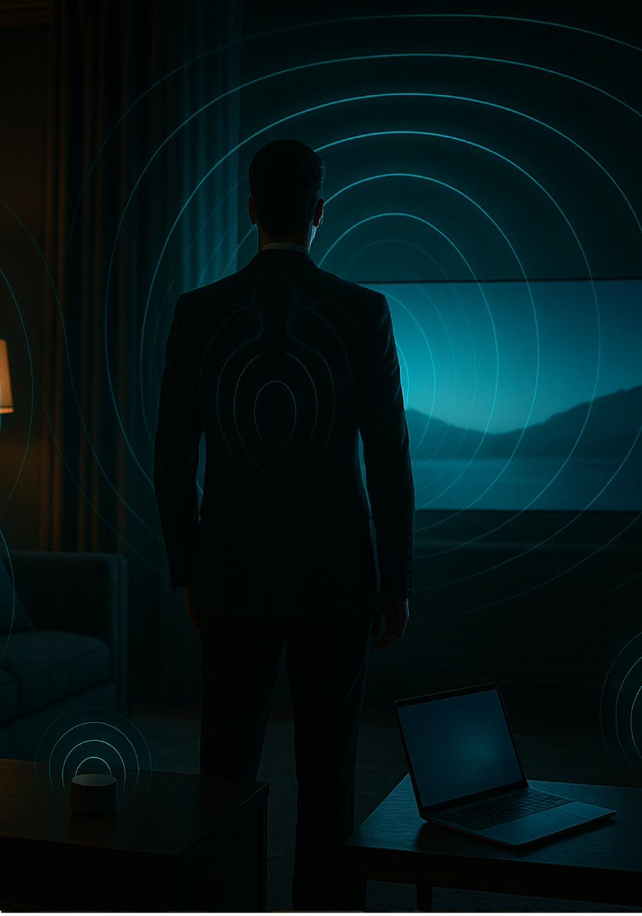 ARMUREL looks and fits like a classic Italian couture suit sharp silhouette, clean lines, perfect drape. But hidden inside the lining is a woven silver barrier engineered to reduce EMF exposure from smartphones, WiFi, Bluetooth, planes, and cell towers.